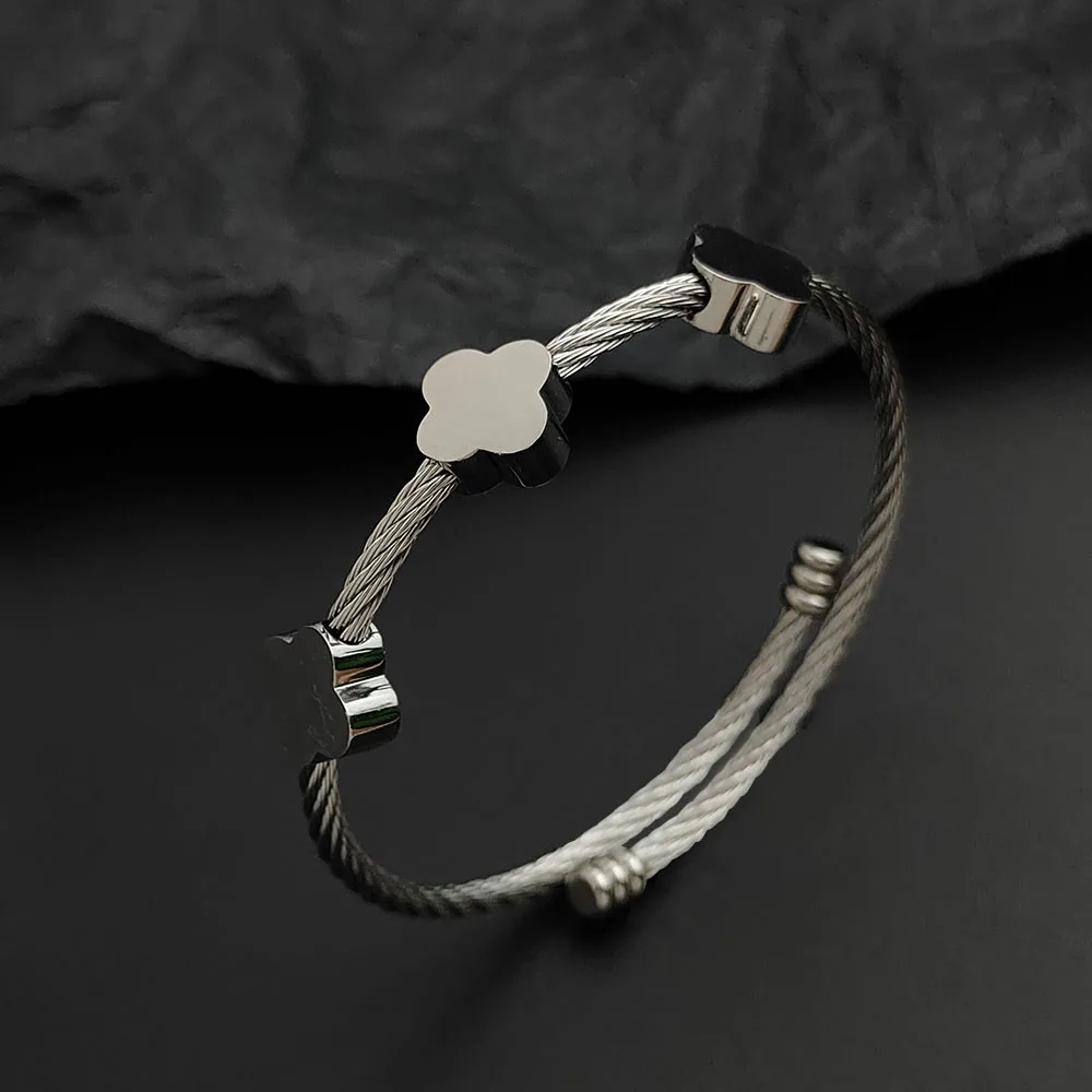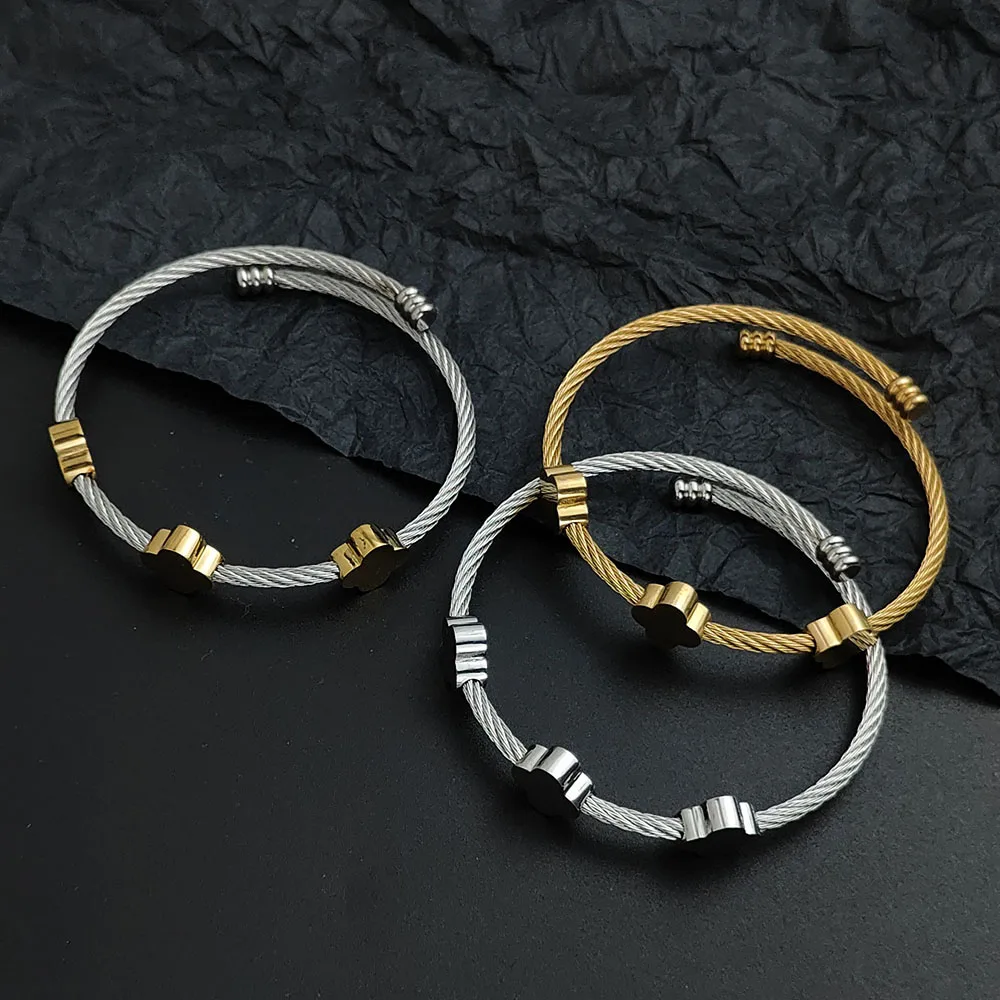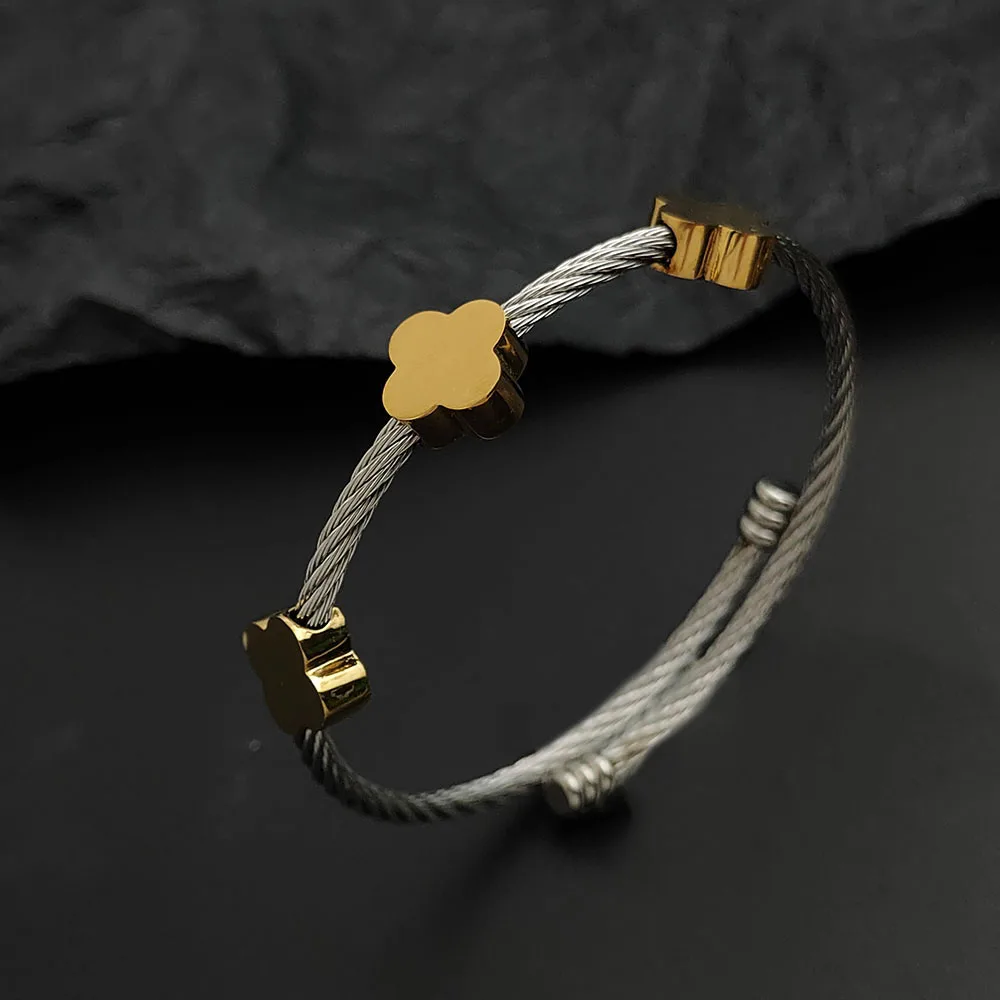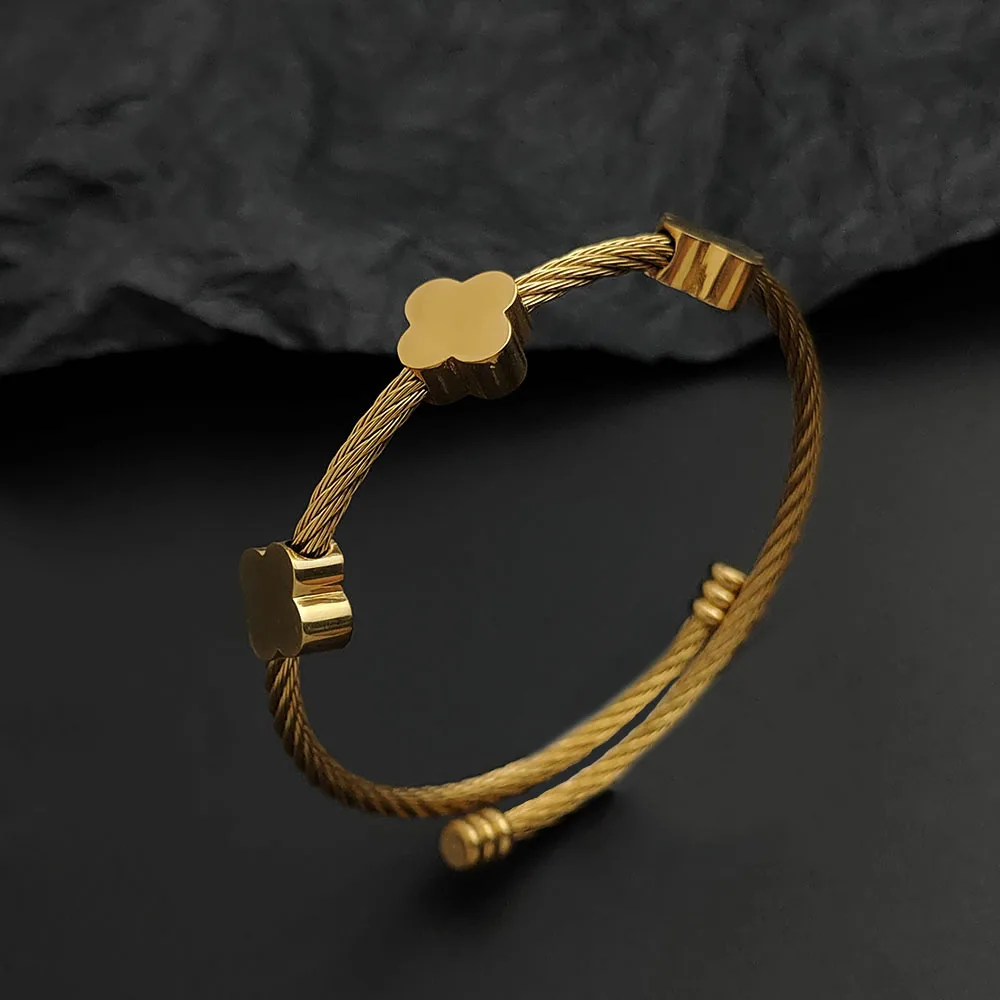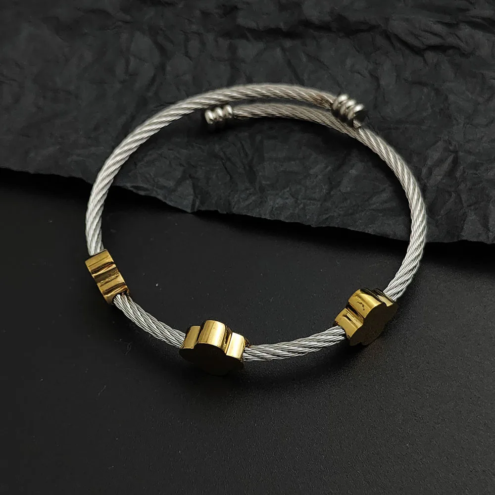 سوار نسائي من الفولاذ المقاوم للصدأ مطلي بالذهب