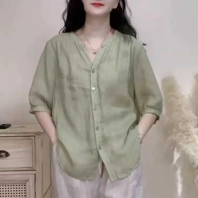 مصنوع من القطن والكتان النقي، هذا القميص يوفر ملمسًا خفيف الوزن وجيد التهوية، مثالي للارتداء في الصيف.