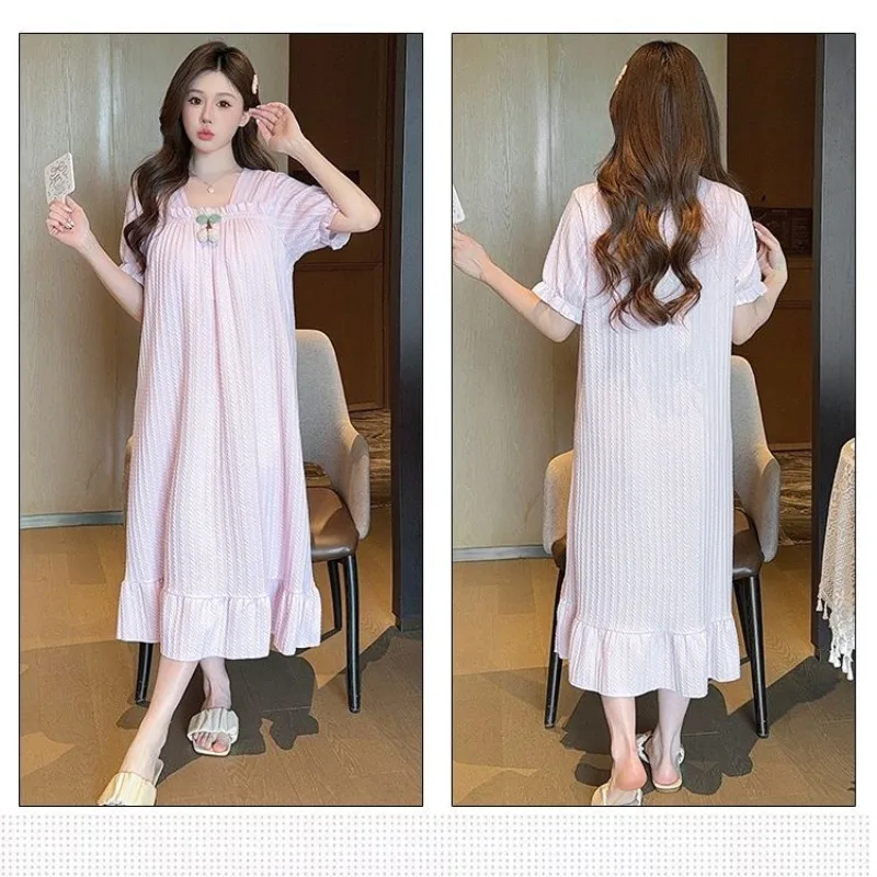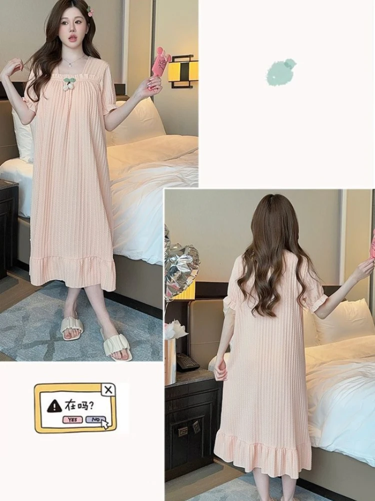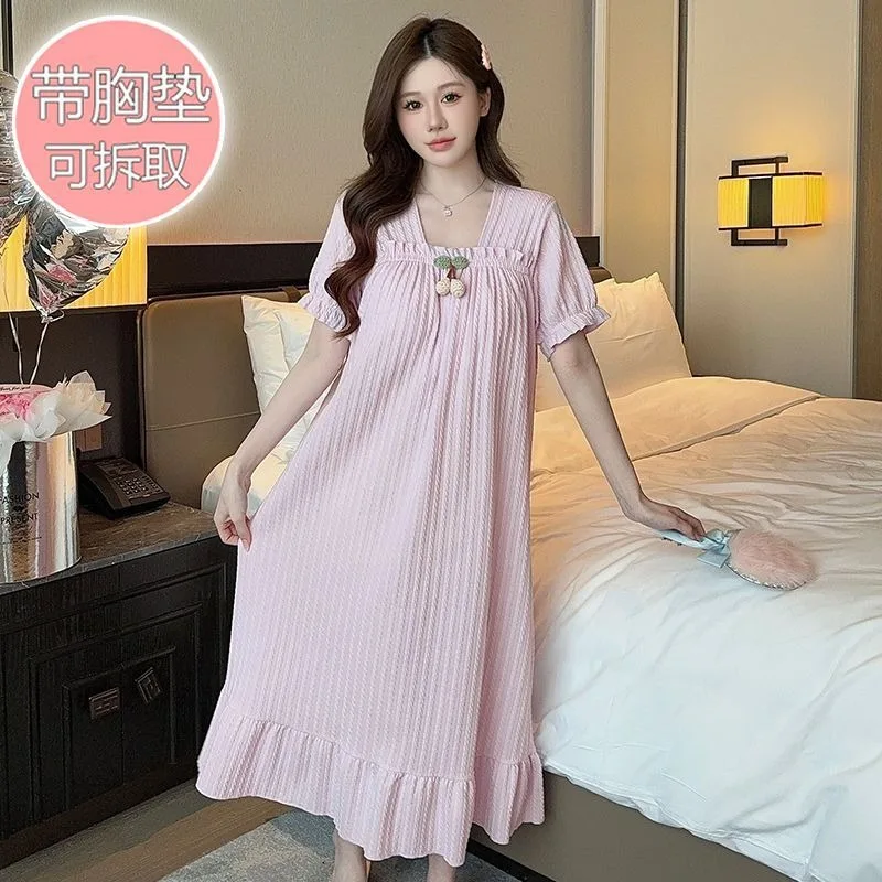 M-5XL حجم كبير بيجامة قطن المرأة القطن قصيرة الأكمام ثوب النوم مع منصات الصدر الأميرة فضفاض ملابس خاصة خارج المنزل ارتداء